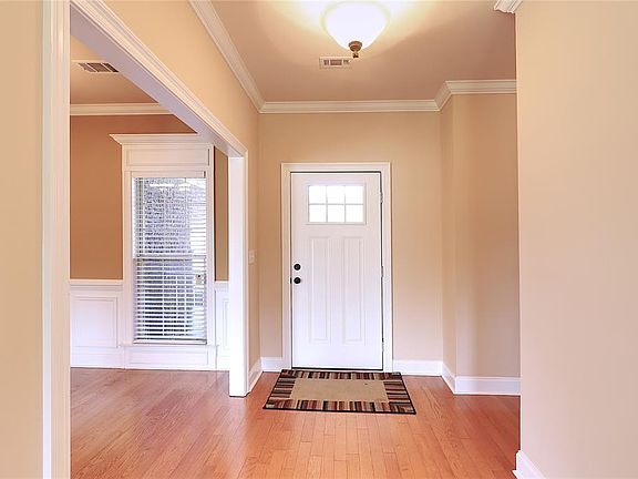 The charming exterior of this home is just as inviting as the inside. Up the pathway, past the white railing on the porch, and through the rust red door, you will be welcomed into the Foyer by wood floors that extend into the Formal Dining Room which is supported by white wainscoting and crown molding. A large entrance leads from the Dining Room to the carpeted Great Room where the fireplace is the focal point. The trey ceiling and the molding encasing the window and door takes this room to a new level of elegance. Just around the corner is the Kitchen and Breakfast Nook. The Kitchen features warm wood cabinets, stainless steel/black appliances, tile floors, and a pantry. Hiding behind the Kitchen is the Laundry Room which in turn leads to the two-car garage. On the opposite side of the house are the bedrooms and the BONUS ROOM. The Bonus Room is an ideal spot for an office, play room, home gym, etc. The roomy Main Suite is outfitted with trey ceilings and a bathroom with a garden tub, separate shower, double split vanities and tile floors. The guest rooms have ample space and share a bathroom. Outside you can explore the HUGE, level, fully-fenced yard or enjoy it from the covered patio. Just when you think it can't get any better, this house comes with a $2000 carpet allowance and even a $1500 window allowance! Schedule a showing today!