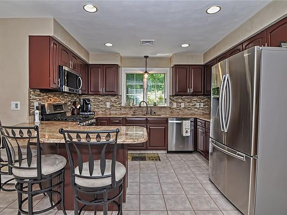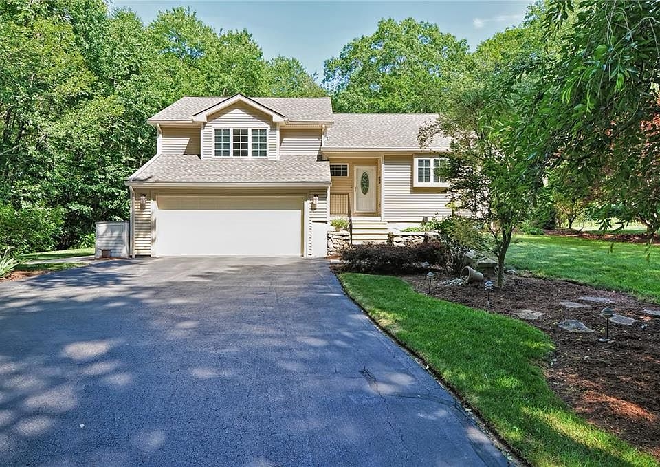 Set back over 250 feet off the road you will find this one a kind opportunity on over 2 acres of land. Easy access to commuter locations in RI & MA make it an ideal location. Inside you will find an entertainer's paradise. The living room with vaulted ceiling with a fireplace, hardwood floors and skylights flows into the formal dining room then around to the tiled kitchen with granite countertops, stainless steel appliances and breakfast bar. The updated master bathroom features a glassed shower enclosure, jetted soaking and generous walk in closet. You can then head downstairs to the huge finished basement with another entertaining area plus a space for a home office and or a gaming room. Still need more space? Don't forget the over 300 sq foot wrap around deck with sliders from the living room. Located in the Blue Ribbon award winning Community School district.