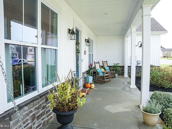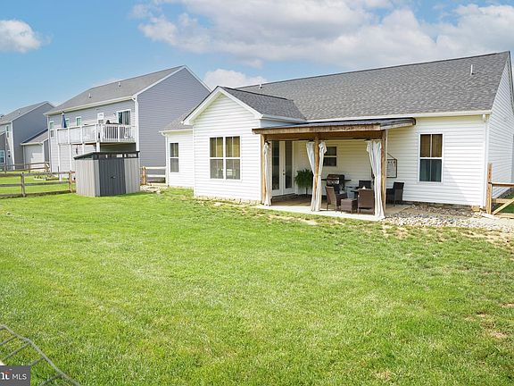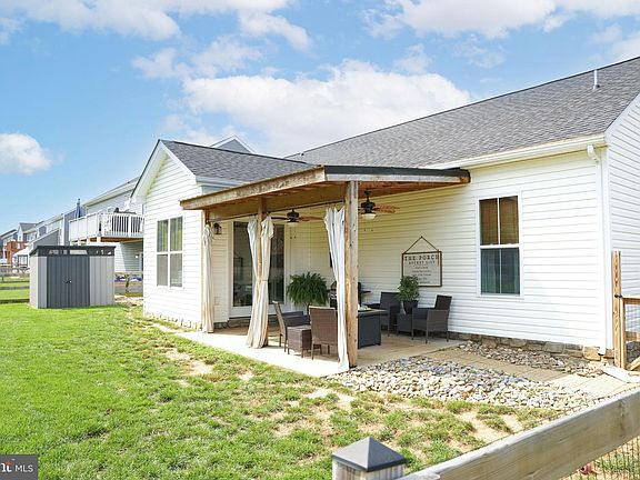 Gorgeous Rancher was built like the model home. This home is loaded with extras. 3 bedroom, 2 bath, living room, kitchen, breakfast area. 2 car garage has a mini split for heating and air conditioning and is currently being used as a photography studio but garage door and opener is still in place. 10 foot plus ceilings with vaulted ceilings in the kitchen and living room. 9 foot tall inside doors through out the home. Tile shower in the primary bathroom with dual sinks and a make up table . Walk-in closet, tray ceiling and ceiling fan in the primary bedroom. Pantry , coat closet and two linen closets. Huge laundry area off the garage. 42 inch cabinets and granite counter tops in the kitchen. Coffered accent wall in the living room and breakfast area. Beautiful sun room off the breakfast area. Huge 9x34 front porch for the evening view of the sunset. 10x14 covered patio overlooking the fenced in back yard. All this is located in a very quiet and desirable neighborhood just minutes from I 81, shopping, restaurants and Historic Downtown Martinsburg, Twenty five minutes to Historic Hagerstown MD and Winchester VA. THIS IS A MUST SEE!!!!