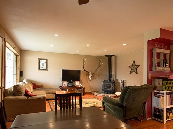 Cutest house you've seen!! 3 bedroom, 1 beautiful bath w/tiled walk in shower! Laminate flooring, remodeled kitchen & newer Blazeking. Outside covered deck, stamped patio & workshop with cooler! A must see!* Privacy fenced yard provides some amazing outdoor living space! Will install new carpet but would like buyer input.