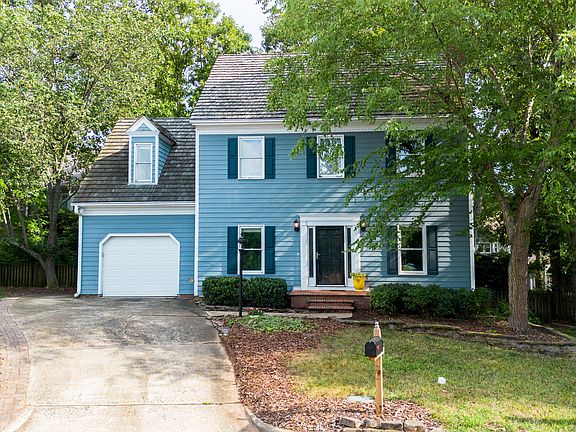 Price Improvement! Welcome to this attractive, single family home in highly desirable Cary. This home is located in a private cul de sac just one block, a pleasant and easy 5 minute stroll, to one of Cary's beautiful YMCA facilities. This charming home boasts a light and bright eat in kitchen with an island and a built in desk area as well as stainless steel appliances including a double oven. Located on the first floor you'll also find a dining room and a living/family room each with hardwood floors. There is a wood burning fireplace in the living room and French doors that lead out onto an inviting 12' x 12' deck. The fenced back yard has mature landscaping, fresh mulch and several hardwood trees that afford privacy and make a perfect, tranquil space for entertaining or just enjoying the outdoors. The primary suite has two walk in closets and a private ensuite with a separate shower and tub. There are three additional rooms on the second level. Bedroom two has a walk in closet and bedroom three has built-ins in the closet. There is a washer and dryer conveniently located on the second level as well as a flex space with laminate flooring and great light. There's a surprise in store on the third level, where you'll find a finished flex space (or 4th bedroom) perfect for a home office, a playroom or just more space for you or your visitors. Also lots of storage on the third level in the walk in attic with closet. An attached one car plus garage makes this fresh and clean, move in ready home a perfect place to call your own in sought after Cary. Just 3.8 miles to Trader Joes and Aldi.