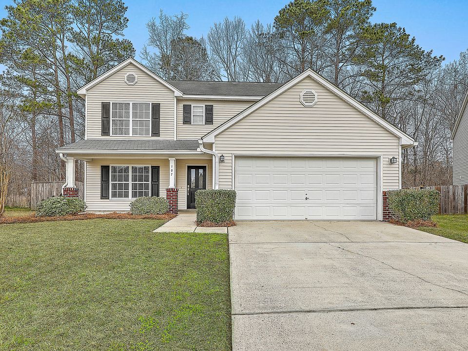 Welcome to this newly updated and move in ready 5 bedroom home in Liberty Hall Plantation! Located on a private cul de sac with a large backyard surrounded by trees and privacy! The main level offers an open eat-in kitchen with all new stainless steel appliances and brand new hardwood floors. The spacious primary bedroom is on the first floor with new floors, a large walk in closet, and brand new shower and fixtures in the bathroom. Upstairs offers 4 more bedrooms all with new flooring, laundry room and a full bath. Other great features include a brand new Goodman HVAC unit, wood burning fireplace in the living room, screened in porch, extra concrete patio, private wooded partially fenced backyard, 2 car garage with long driveway for extra cars, and a .25 acre lot! Liberty Hall...is a highly desired neighborhood in a great location with a community pool and park.