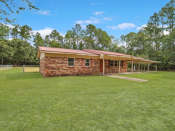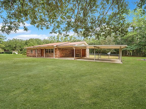 Make this amazing home yours. With a little over 4 acres of private land. Solid brick home with a roomy carport for plenty of cars. Newer AC and Heating system. Also newer roof! Three roomy bedrooms and two baths. Nice and open living room area with lots of natural lighting. Extended front porch so bring your rocking chairs! Not in a flood zone and no HOA to pay! Welcome home.