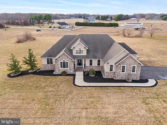 Discover over 4,400 square feet of serene living in this stunning 5-bedroom, 4-bathroom rancher, perfectly situated on more than 3 acres of tranquil land. From the moment you arrive, you’ll be captivated by its remarkable curb appeal and inviting presence. Step through the front door into the grand foyer, where cathedral ceilings and gleaming hardwood floors welcome you with warmth and sophistication. Natural light pours into every corner of the home, creating a bright and airy atmosphere. To the right of the foyer, a formal dining room offers the perfect space for entertaining. Straight ahead, the living room impresses with soaring cathedral ceilings, a cozy fireplace, and breathtaking views of the neighboring horse farm. The spacious kitchen is a chef's dream, featuring stunning countertops, stainless steel appliances, gas cooking, a pantry, ample cabinetry, an island, and a breakfast bar. The kitchen seamlessly flows into a casual dining area and an additional family room, offering versatile spaces for gatherings and relaxation. The primary suite is a true retreat with its high ceilings, expansive walk-in closet, and a luxurious en-suite bathroom complete with a jetted tub and walk-in shower. Four additional bedrooms provide ample space, including two princess suites, each with its own private bathroom and walk-in closet. The enormous unfinished basement offers endless potential—imagine a home gym, theater, or recreation area—with plenty of room left for storage. A three-car garage adds even more convenience and space. Enjoy peaceful mornings or relaxing evenings on the back porch, where you can sip coffee or tea while admiring the picturesque views of the neighboring horse pasture. This home is a rare find, offering space, elegance, and tranquility in a stunning setting. Don’t miss your chance to make it yours—schedule a showing today!