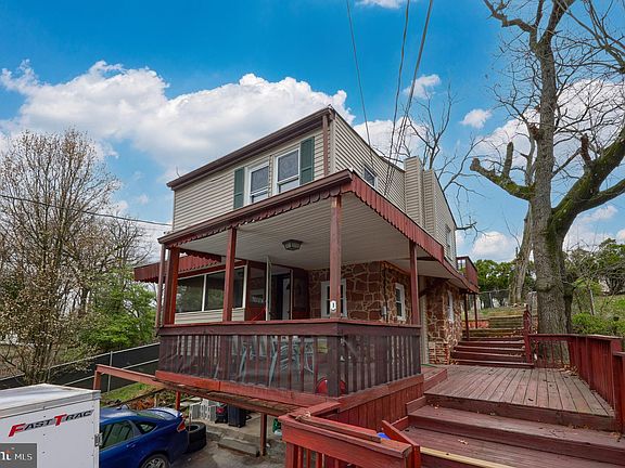 Affordable Mifflin Single Enjoying a quiet street just a short walk to Mohnton playground in Governor Mifflin schools is a stone and vinyl family home, just waiting for your personal touches! The large driveway leads to stairs up to the expansive wrap around deck, offering multiple entries to the main level of the home. Through the main entry, you’ll find an open concept main level with light vinyl flooring that flows throughout the living room and dining area. The space also enjoys recessed lighting, while an open breakfast bar makes it easy to entertain. The kitchen also features wood floors, new cabinetry, granite countertops, and gas cooking. Upstairs, the spacious main bedroom is highlighted by a vaulted, wood ceiling with fan, carpeting, and a walk-in closet with built-in organizer, while the second bedroom also enjoys a vaulted ceiling, as well as vinyl floors and private access to the large back deck. Down the hall is a full bathroom with tile flooring, tub/shower, large window, and wood vanity. An unfinished lower level hosts the laundry, as well as plenty of storage space. The raised, back deck overlooks the fenced-in backyard, where greenery provides additional privacy from neighbors.