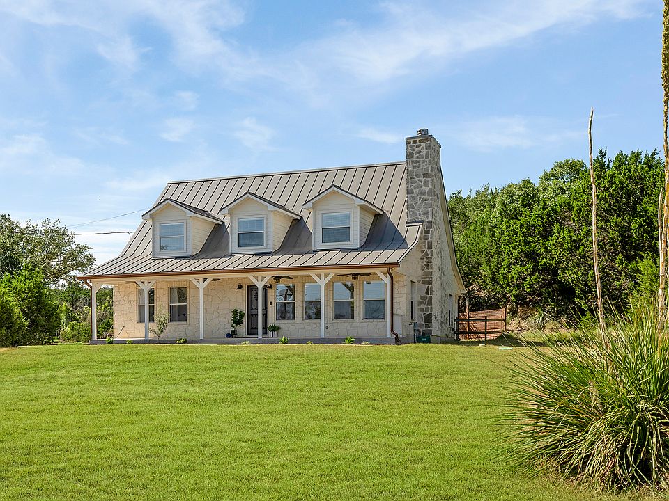 Discover this rare gem near Boerne: a charming Texas Hill Country farmhouse nestled on 2.8 acres at the end of a cul-de-sac. This fully fenced property boasts minimal restrictions, offering both privacy and potential. With over 2,600 square feet of living space, this home features 3 bedrooms, 2.5 bathrooms, and a versatile game room that can easily be converted into a fourth bedroom. The spacious and updated kitchen is a true delight, featuring abundant cabinetry and countertop space, stainless steel appliances, a built-in oven and microwave, an island, and exposed industrial-style shelving. The large pantry, adorned with shiplap walls and open shelving, doubles as a laundry room. The primary bedroom located on the main floor includes a spacious bathroom and two walk-in closets, providing ample storage. Upstairs, the two secondary bedrooms are generously sized, each with its own walk-in closet. A guest bathroom, complete with a double vanity, is conveniently situated between the bedrooms. The expansive game room, also located upstairs, offers a large walk-in closet and scenic views of the northern Texas Hill Country. This versatile property is perfect for a variety of uses-from housing animals and 4H projects to accommodating horses. The detached two-car garage complements the main house, constructed with the same native Hill Country stone and is equipped with a 50A/30A/20A box for RV hookup on the back of the garage. Located just 10 minutes from historic downtown Boerne, within the Boerne school district and with easy access to I-10, this property offers a unique blend of rural charm and modern convenience. Don't miss your chance to own this exceptional piece of real estate where spending evenings on the front porch looking at the views and wildlife can be your very own paradise in the Texas Hill Country!