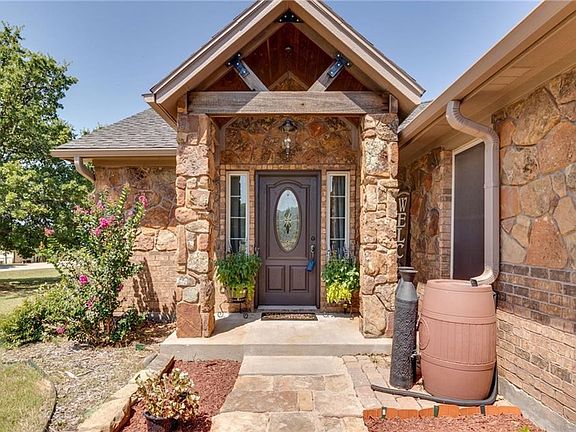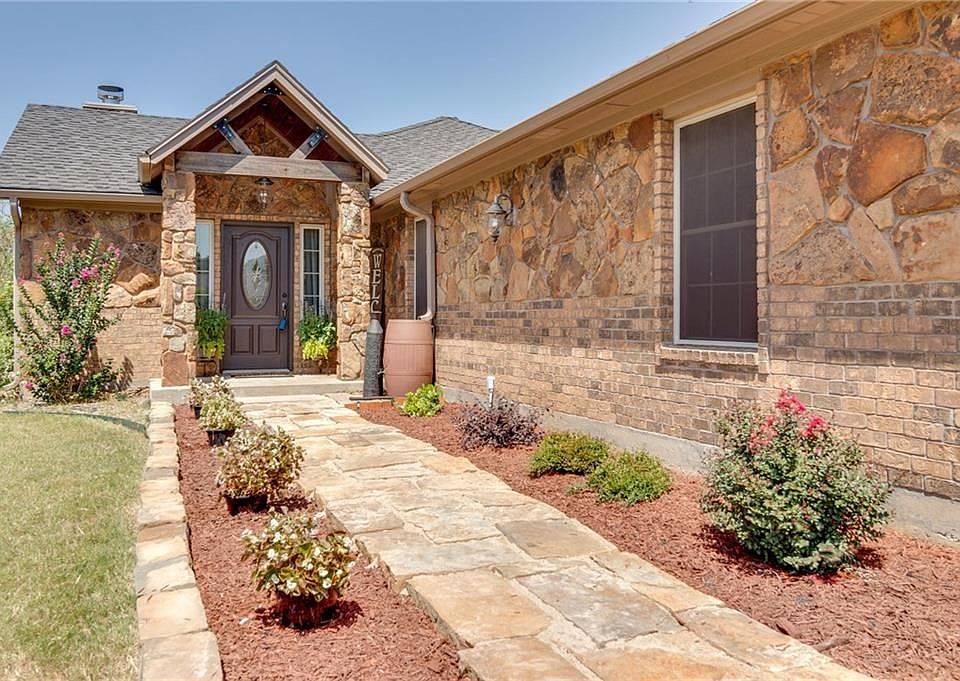 GORGEOUS CUSTOM HOME IN AWARD WINNING BROCK ISD. Kitchen showcasing granite countertops, a tumbled stone backsplash, a gorgeous farm sink, stainless steel appliances & a 6 burner gas range. Kitchen opens to the spacious dining room with a wood beamed ceiling. Spend time in the family room complimented by a cozy stone and brick gas fireplace, plus surround sound speakers. The spacious master suite boasts beautiful laminate flooring, a sitting area, a dual sink vanity & walk in shower with dual shower heads. Enjoy your relaxing evenings on the covered extended patio overlooking a fire pit & tons of space to play or splash around in your play pool. Take advantage of the oversized garage, plus additional parking.