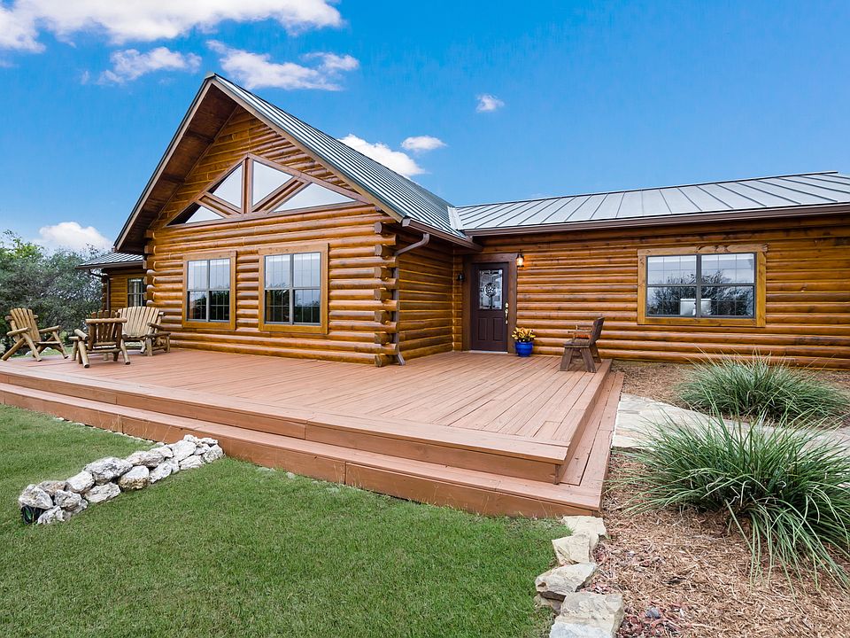 Custom Log home w/Panoramic Hill Country Views on 3+ Acres. 3B/2B + Detached 3 Car Garage! Open floor plan, Englemann Spruce wood accents & high ceilings. Fabulous chef's granite island kitchen w/cooktop, & wine rack. Custom glass front cabinets. Separate dining area overlooking the large covered deck, & pool w/mature landscaping & gorgeous water feature. Enjoy country living on your back patio overlooking country views & wildlife! Neighborhood offers 3 waterfront parks for tubing, fishing, and entertaining. Boerne ISD