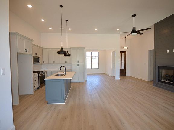 New home in Hidden Creek with 13' ceilings in main living area/open concept. Spacious dining/sitting room off of foyer plus large eat in area and island to seat 4-6. Master suite has bedroom with tray ceiling, large walk in closet and bath with tiled shower and soaker tub. Two guest bedrooms on opposite side share a bath with double vanity. Upstairs is 4th bedroom/2nd living space or bonus play room for the kids to enjoy. Oversize double garage features smart home garage door opener. Home has smart security system, tankless gas hot water supply, covered grilling patio, luxury vinyl plank flooring on main level and carpet upstairs. This home is beautifully done with fixtures/backsplash and under cabinet lighting in the kitchen. Builder will work with a buyer on concessions with acceptable sales price! Property is owned/built by agent/broker