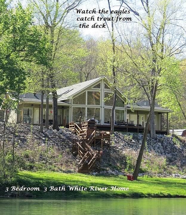 FABULOUS WHITE RIVER HOME WITH WINDOWS GALORE TO ENJOY THE SPECTACULAR VIEW. SPACIOUS GREAT ROOM, WOOD FLOORS & GORGEOUS GRANITE COUNTERTOPS THIS HOME HAS IT ALL. HOME FEATURES 2 MASTER SUITES WITH WALK-IN CEDAR CLOSETS & UPSTAIRS LARGE ROOM CAN BE BEDROOM, MEDIA ROOM, YOU NAME IT. IT HAS A CLOSET AND FULL BATH. HOME SITS ON 1.26 ACRES WITH 160 FEET OF WHITE RIVER FRONTAGE. DECK IS OVERLOOKING THE RIVER WITH EAGLES THAT FLY BY DAILY. VERY EASY ACCESS, HOME IS NOT IN FLOOD PLAIN BUT PART OF THE LOT IS.