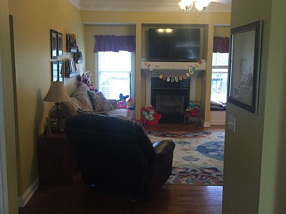 Beautiful 3BR, 3 Bath house in the desirable Woodlawn Springs subdivision. The Master BR has vaulted ceilings along with double closets and Master bath attached with big Jacuzzi tub. Dining room and living room are open and have 10 ft. ceilings and a gas fireplace. Kitchen has brand new dishwasher and all appliances stay. Basement has 1516 sq. feet finished with a large den, another big room (could be a 4th bedroom), Full bathroom,storage area, and a utility garage that opens up to the backyard. The basement is a walkout with a large deck and patio underneath that is covered. The yard is .45 acres and has a built in playhouse that stays and a basketball court out back. Air conditioning unit was replaced last summer. Two car garage. Homeowners have access to the pool, basketball.