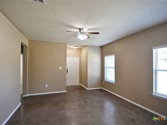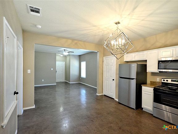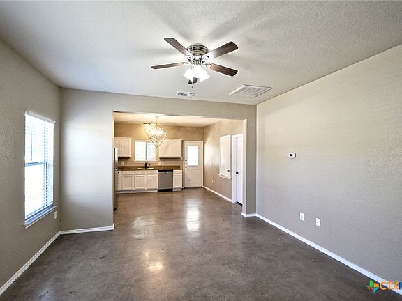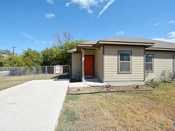 Check out this newly renovated duplex! It has a modern, open floor plan with sleek stained concrete floors, a kitchen decked out with updated shaker cabinets, and stainless steel appliances. The primary suite features a walk-in closet and a private bath, with the other bedrooms on the opposite side of the home for added privacy. There's also a separate laundry room with washer/dryer hookups to make laundry day a breeze. Step outside to a big backyard on a corner lot with only one neighbor! It's complete with a partial privacy fence and handy storage shed. Plus, it's in a great spot-right near the new library and a quick hop onto IH 35 for easy trips to San Antonio or Austin! **Home does allow for larger pets with slight increase to pet rent!!
