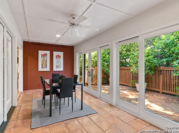 Secret garden retreat greets you as you walk the entry into this luxury Spanish split level home with expansive custom patio. Relax and recharge in one of the enclosed patios or on the deck in the outdoor oasis. Easy living with the low maintenance landscaping. Large master with multiple closets to store all of your necessities. Convenient central San Antonio living just minutes to restaurants, shopping, and entertainment. Highly regarded Alamo Heights schools. Welcome Home