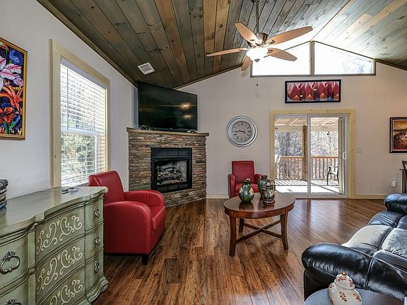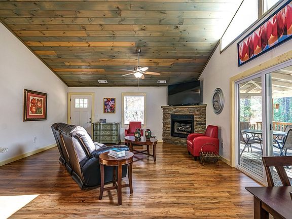 Welcome to this charming FULLY FURNISHED 2-bed, 2-bath single-level ranch home, nestled amidst a serene wooded landscape. As you step inside, you'll be greeted by a warm and inviting Great Room, featuring a  stacked stone corner fireplace, and a wood vaulted ceiling that adds a touch of rustic elegance. Large sliders open to a back porch, perfect for enjoying the beauty of the outdoors. The kitchen is a culinary delight, equipped with sleek black appliances and adorned with granite countertops, complete with a convenient breakfast bar for casual dining next to your main dining area. Down the hallway, you'll find the Master Ensuite, offering a cozy and private retreat. The ensuite bath boasts a tub/shower combo and a granite-topped vanity. The guest bedroom is equally comfortable and well-appointed, ensuring that your visitors feel right at home. The adjacent guest bathroom is both stylish and functional. For added convenience, there's a dedicated laundry area in the hallway, making daily chores a breeze. The home is thoughtfully designed for ease of living, offering a practical layout and comfortable spaces. Outside, the property sits on a wooded level/rolling lot, allowing you to immerse yourself in nature and enjoy the tranquility of your surroundings. Whether you're looking for a peaceful getaway or a cozy permanent residence, this fully furnished home is ready to welcome you with open arms. Don't miss the opportunity to enjoy the comfort and beauty of MOUNTAIN LIVING!