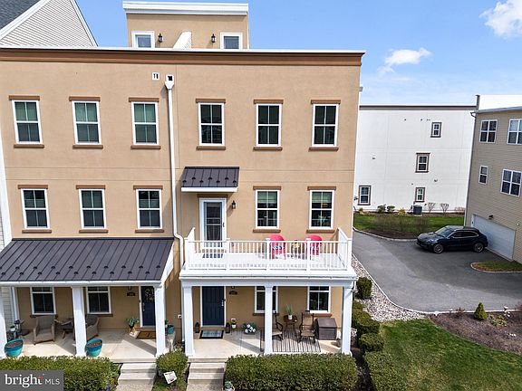 Welcome home to 107 Royal Mews, located in the highly sought after community of Waterside. Experience everything waterfront living has to offer in this semi-custom Mignatti built home with over $85,000 in upgrades, in the largest model available in the community: the Annapolis. This 3 bedroom + Den, 2 full bath, 2 half bath home is an end unit just a half block away from the Delaware River and features river views from every floor, with 4 outdoor living spaces including the “rooftop stairway to heaven” terrace. Enter the home from the ground level covered porch, right off the gorgeous Mews, and walk into your spacious foyer that includes hickory hardwood flooring, a large coat closet, den/office & mechanical room. The 2 car garage is also accessible from this level, which includes tons of storage and an additional closet inside the garage. On the second floor, your hickory hardwood flooring continues & you will find your open and inviting main living area- combo kitchen/dining/living- perfect for entertaining and gatherings. There is a balcony off the living room, along with a 8x20 rear deck off the kitchen complete with a retractable awning. The kitchen has upgraded cabinetry, an expanded pantry, quartz countertops, porcelain tile backsplash, under cabinet lighting, upgraded SS appliances, and custom pendants over island that seats 4 with ease. There is also a large half bathroom on this floor with gorgeous wainscoting. On the third floor, you will find the primary suite, with more hickory hardwood floors, a custom Closets by Design walk-in closet fit out and a full en-suite bathroom with double vanity. There are 2 more bedrooms on this floor with upgraded carpeting & 8lb padding, ceiling fans in all bedrooms, great closet space and tons of natural light pouring in. The laundry area is also on this floor with more storage inside the laundry room along with newer Samsung washer & dryer. The fourth floor features another half bathroom, and hallway leading out to your rooftop terrace with direct river views. Almost all light fixtures have been replaced throughout the home & upgraded for truly custom lighting. Custom Hunter Douglas window shades and blinds throughout the home. Simplisafe home security system, upgraded electric panel with whole-house GFCI protection. Whole-house humidifier and upgraded air cleaner. There is a three zoned HVAC with Nest thermostats, and a separate unit on the fourth floor. All doors are solid core, and there are extra hose bibs on the roof and deck. Pride of homeownership and meticulous care is evident in this pristine property- there is nothing left to do but move in, and experience the elevated Waterside lifestyle. Schedule your private viewing today.