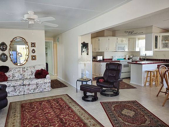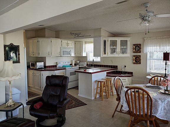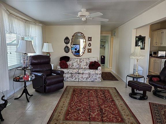 Great home in a gated, golf course community. 55 plus. Recently remodeled mobile home with additional room. addition gives the appearance of a double wide. Handicap ramp access to the front door. Covered carport with room for cars and golf cart. Attached shed with double doors big enough to hold a golf cart. Some furnishings stay with the home as well as all of the appliances, window treatments and housewares. Very low HOA dues give you access to the community pool and clubhouse.