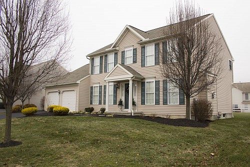 Meticulously kept one owner home with upgrades; built by Berks Homes. During the building process, the owner made some changes to the original plans. The garage was extended by 2 feet in width, garage door was upgraded to a master lift and an exterior side door was added for easy access to back yard. The first floor laundry room was made larger and is off of the garage. The kitchen is well equipped including an island with extended counter for bar stools, gas range and large pantry. The living room has a gas fireplace to enjoy winter evenings. All of the windows in the front of the house have electrical sockets underneath and are controlled by one switch for candle lights. Upstairs you will find four bedrooms, 2 with walk in closets, and 2 baths. The master bedroom has a large walk in closet, and the master bath has a garden tub and separate shower stall. Both bathrooms have the backsaver sink vanities. In the basement you will find a gas furnace and hot water heater, sump pump, high ceilings and open space ready to be finished. The front of the home has professional landscaping and the driveway was sealed.