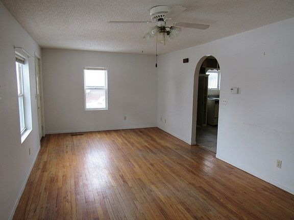 This Sweet Bungalow Will Amaze You On The Roominess Of It! There Is A Bedroom On The First Floor Along With A Full Bath, Cute Kitchen And Living/Dining Room Which Have Hardwood Floors. The Windows Have Been Replaced Recently Also. The Upper Level Has A Walkthrough Bedroom Or Office Area And A Second Bedroom. The Basement Is All Garage With 2 Garage Doors. There Is Plenty Of Room For Storage In This Roomy Area. Call Us Today, This One Will Not Last Long! This Property Is Sold As Is, Where Is!