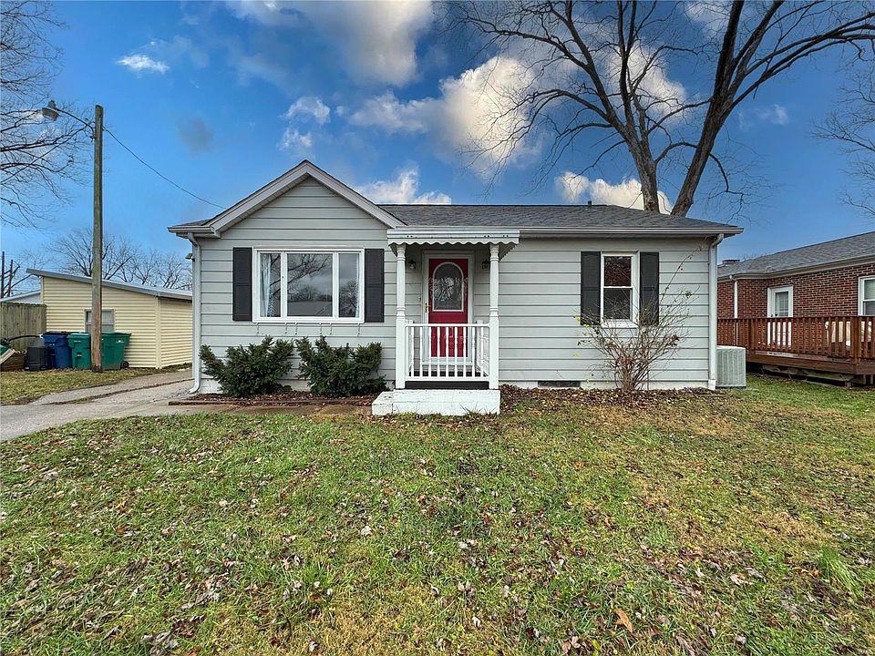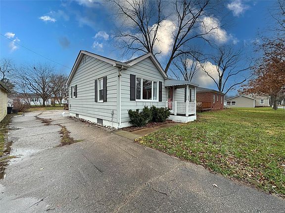 Sweet bungalow in the heart of Smithton (FREEBURG HIGH SCHOOL) packs tons of punch in a small package! Huge living room w/triple front window is a great place to showcase your holiday decor. Original hardwood floors and radiant heat & central air. Beds #1 and #2 are about the same size with extra deep closets. Main floor bath with tub/shower combo has everything at your fingertips. Double open doorway leads to eat in kitchen/dining. HD laminate counters, double sink, all electric, stainless hood vent, center island/breakfast bar & LVP flooring Back mud room leads out to the single car garage w/home theater set up (equip included). One more door to your massive fully screened patio w/walk door. Driveway and pads give you additional parking or 4+ cars. Partially finished basement (with 2nd bath), converted garage & huge screened in porch! Perfect for entertaining around the firepit in your large, flat, partially fenced yard! Quiet street with lots of mature trees and charm.