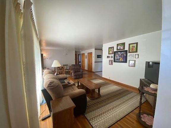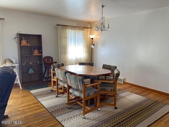 Nice ranch style home, close to both schools and swimming pool park. Large living room and 2 bedrooms on main with 2 non conforming rooms in basement. Home features steel siding and metal roof. Large private lot with 2 sheds and detached garage.