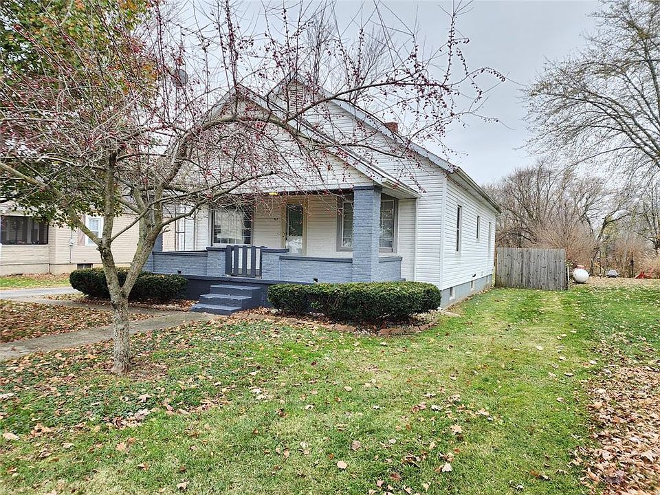 Put this well-maintained, super-efficient home on your list! This 2 bed-1 bathroom home offers a great layout and comes with all appliances less than 3 years old, a full basement, detached garage, garden shed with cement floor and a fenced-in back yard. Additional yard behind the garage for more room to add a firepit, swingset or gather with family. Newer, carpet, paint, plank flooring in the kitchen and high effeciency furnace. Deep closet in the master bedroom. The covered front porch is a great asset; patio furniture is included.