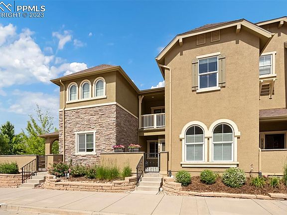 This beautiful, well-maintained condo offers low maintenance and easy living in the popular Westside community of Gold Hill Mesa! As you enter from the private front courtyard you step inside to an open concept main floor layout with spacious entry with hardwood floors that flow into the dining and kitchen areas. The kitchen features tons of cabinet storage with 42” upper cabinets with crown moldings, stainless steel appliances, slab granite countertops, and a breakfast bar that opens to the dining area. The light and bright living room has arched window & doorway architectural details, a gas fireplace, and mountain views. There is also a powder room and a separate laundry room on the main level. The upper level features 2 bedrooms each with private bathrooms as well as a loft area with built-in cabinet storage making it perfect for a home office. The master bedroom is a true retreat with tray ceiling detail, access to a private covered balcony with mountain views, a 4pc bath with a large soaking tub/shower, and a huge walk-in closet. The 2nd bedroom has its own ¾ bathroom, incredible Pikes Peak mountain views and lots of natural light. Lastly, there is an alley accessed 2-car attached garage. This condo is conveniently located across the street from the community center with a fitness room and large green space where there are often community concerts/events such as “music on the mesa”. This convenient Westside location is within walking distance to Bear Creek Park/Dog Park and close to Red Rock Canyon Open Space, Old Colorado City, Garden of the Gods and affords easy access to Downtown, I-25, Hwy 24 & Manitou Springs. This property is in pristine condition. Don't miss it!