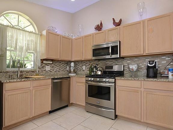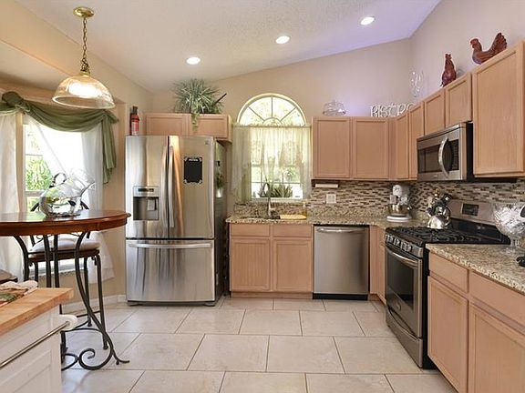 **Multiple Offers** Please submit highest & best by 5 pm on Friday, 03/31/17. Welcome to the prettiest home in the community! You'll love all that you have in this 4BR/2BA pool home. You'll be impressed from the moment you arrive - nice landscaping provides great curb appeal. Step inside to a home full of updates. New since 2015: A/C, ceramic tile throughout common areas, carpet in bedrooms, Hunter ceiling fans, and updated kitchen with granite counters, stainless appliances, gorgeous backsplash (tile/glass/stainless). Spacious great room-vaulted ceiling and sliding door with window above give the space an open and bright feel. For dining, you have the perfect sized eat-in nook in the kitchen or a separate dining room that will seat a crowd! Master suite on one side of the home - ideal for privacy. Bedroom has direct access to the lanai. Attractive master bath with dual sink granite vanity, soaker tub and separate shower. Split layout for remaining bedrooms - 2BR/1BA in rear of home and 1BR off great room - ideal locale for office space. Convenient interior laundry room. You'll love having a private, screened pool (heated) and covered lanai w/doorway that provides easy access to the secondary bath. Optional HOA - if you join, you'll have access to an attractive array of lakeside amenities. Home is located minutes from SR 192 with numerous shopping/dining venues and a short drive to the attractions. Come see all that this special home has to offer!