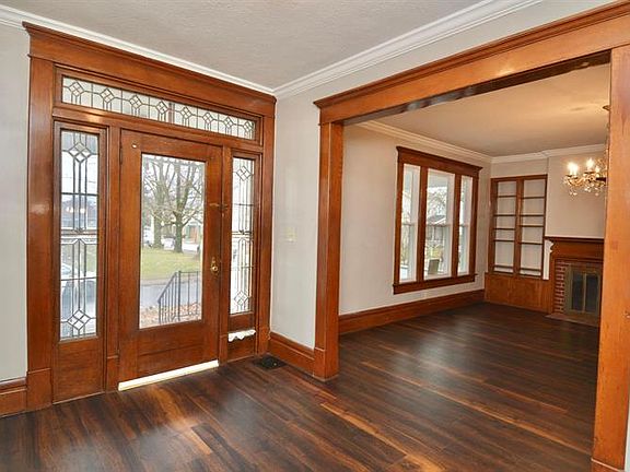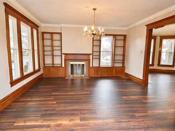 Huge, upgraded solid brick home on a corner lot with 4 bedrooms, 1.5 baths and sunroom; 2200sf of living space! Lots of character, includes refinished original details: built-ins, light fixtures, doors, etc. Large front deck, new hardwood floors throughout, new updated baths, refreshed bright white kitchen with granite countertops, central air, laundry room and 1 2 bath on 1st level. Large corner lot with fenced-in yard, 2-car garage and large basement! Great price! Hurry, before its gone!