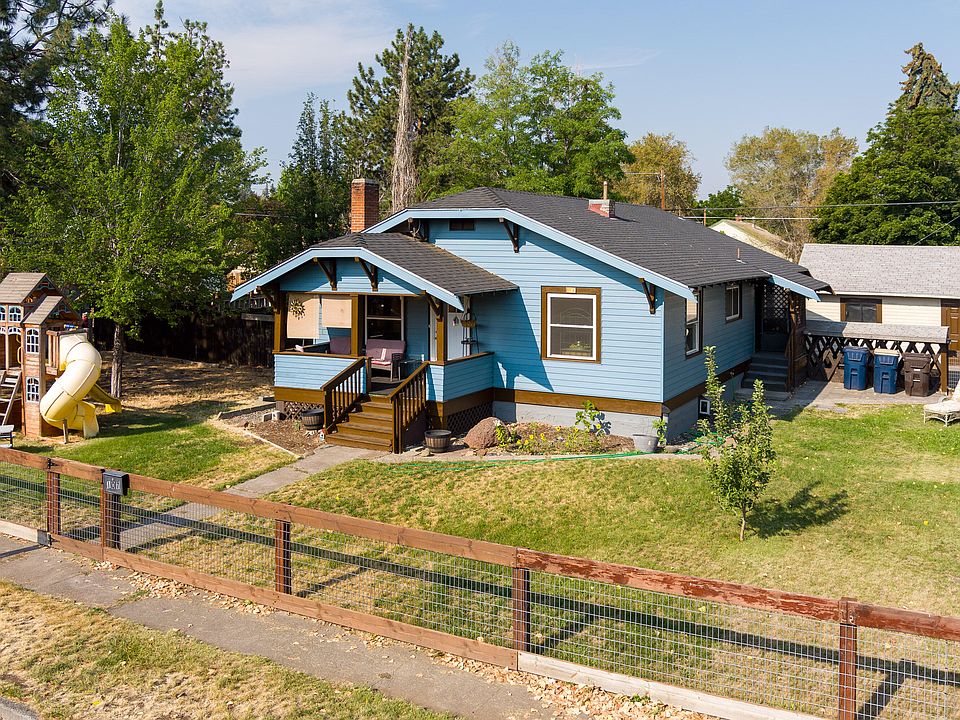 Vintage Redmond Craftsman home on a large corner lot with alley access, large private fenced yard, & RV parking. The home has original hardwoods and almost all of the windows have been updated to newer double pane vinyl windows. Additionally, the roof is only a couple years old. The kitchen is functional & mostly original & the mainfloor bedrooms are all generously sized and the basement is fully finished with a bonus room, family room, storage area, utility room, and access to the outside. A full bathroom could be added downstairs next to the utility area. The fenced back yard is very private and has abundant shade. The front yard is separately fenced and has a play structure. Detached from the home is an older but very functional 2 car garage with attached storage room. The homes is very functional in its current state and is also ready for small upgrades to make it your own while building sweat equity!