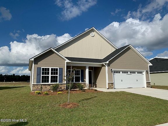 When convenience is everything, the location to live is The Vineyards! A Sydes' exclusive new construction community located inside the city limits of Jacksonville, left of River of Life Church, across from Lowe's Foods. Approx. 10 miles to Camp Lejeune, minutes from all area shopping and dining. Prime location. Natural gas. Laminate flooring standard in the living room. Welcome to the Shiloh - an inviting and well-designed single-level home offering approximately 1,727 heated square feet, featuring 4 bedrooms and 2 full bathrooms. Step inside to a spacious, open-concept layout that provides a natural flow from the living area to the kitchen and dining space—perfect for both everyday living and entertaining. The kitchen includes ample counter space, functional design elements, and plenty of room to gather. The primary suite is thoughtfully placed for privacy and comfort, featuring a sizable walk-in closet and an en-suite bathroom with modern finishes. Three additional bedrooms offer versatility for guests, remote work, or hobbies. With its balanced layout, comfortable design, and timeless appeal, the Shiloh floor plan offers flexibility to suit a variety of lifestyles. Come see how this home can meet your needs; both now and in the future. NOTE: Floor plan renderings are similar and solely representational. Measurements, elevations, and specs may vary in final construction. Limited selections for buyer to choose. Call L/A to verify.