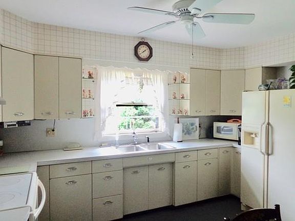 One owner, lovingly cared-for ranch style home w/lots of extras. PRISTINE! Family Room w/ natural wood, opening to large enclosed porch. Large kitchen w/dining area - lots of countertop and cabinets! Double SS sink w/disposal. Kitchen appliances remain for Buyer's enjoyment. Bath w/tile - no-sweat toilet 3 bedrooms and large Living room w/fireplace - Dining Rm.. Stained woodwork and some hardwood under carpet. MANY closets - utility, laundry, cedar, linen!! Basement w/ Rec. Rm, laundry room, hobby room, work room, tons of room for storage & full bath!! So much house for the $$s. File cabinet & safe in basement to remain. Dish for Direct TV. Lawn sprinkling system.