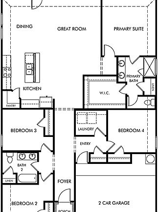 Gourmet kitchen with ample counter space and island. The outdoor covered patio serves as an extended living space. Slate cabinets with white-toned quartz countertops, beige tone EVP flooring with dark gray tweed carpet in our Balanced package.