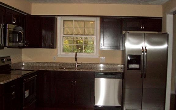 New Kitchen with granite counter tops and top of the line new cabinets, Stainless steel appliances and Refrigerator all new, new bathrooms with granite counter tops, new tub,and new toliets. New flooring, garage, covered patio, paved driveway.