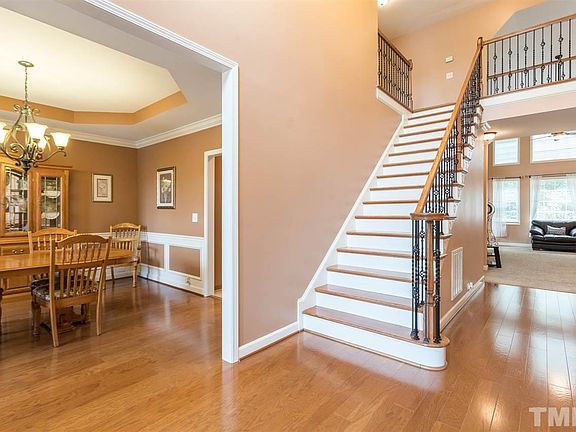 Impeccably maintained GEM in the highly desirable West Lake Neighborhood! First floor master, gleaming hardwoods, screened porch, 5 bedrooms, 3.5 baths, two story vaulted ceiling family room, sunroom/den, spacious secondary bedrooms and walk-in closets throughout. Kitchen features double oven, gas range, granite, counter seating, and spacious breakfast nook. Walk to highly rated schools, community center, neighborhood pool, and Wake County library.