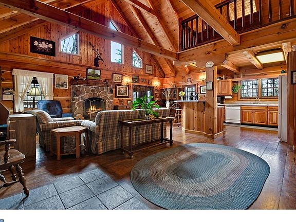WOW!WOW! Nature Lover's Delight, Hunter's Haven, Sense of Self Sanctuary - Live like you are on Vacation every day!! Escape the Ordinary!! Unique Log Cabin Home united to Nature on 66 Acres of Tall Trees, Flowering shrubs and paths for backpack adventures & enjoyment! Built by Celebrity Log Home Builder Extraordinaire Gary Long (who built an 8800 Sq.Ft Log Home for Actor Tom Cruise in Colorado),this Handcrafted Log Home was built primarily with logs hewed on Site w/Bark peeled & logs numbered. Dove-tailed Corners, chinking & an open floor plan that wastes no space combines architectural details with storybook charm. Pine Logs, Western Cedar interior, Hardwood Cherry cabinets, Western Cedar in loft & Poplar Stairway Spindles, floors of Southern Yellow Pine add to the Splendor. A Long Front Porch with wrap around invites you to enjoy the magical sights & sounds of Nature. Feathered friends & the soothing sounds of a nearby stream imbue tranquility on the rear deck. A Soaring Vaulted ceiling adds spaciousness to the great room which shouts hospitality! Many Locally gathered stones form the Impressive Fireplace with a Chestnut Mantle crafted from a Panther Valley Barn. The openness of the great room, dining area & custom crafted locally built cherry kitchen begs you to entertain family & friends without isolating the "chef". The 28 Handle Cherry Cabinet Kitchen harmonizes with the southern pine floor & boasts a JennAire Range & a kitchen peninsula that serves as an informal dining area. A Wall of Windows & Glass bring the outdoors into view in the knotty pine Sunroom which offers a feeling of utter contentment. Main floor Master Suite boasts a private bath w/over sized shower. Additional main floor bedroom offers beamed ceiling & large closet. First floor laundry/utility room adds ease. All the essential rooms are on the main level which makes this home ageless & appealing to all. The Loft which overlooks the great room is embellished with bookshelves & plenty of room for a desk or reading lounge. A huge bedroom on the upper level offers space for multiple beds. A detached 2 car log garage offers a 2nd story open floor plan apartment for long-term guests. A Long Driveway offers privacy without Isolation. Bounded on the North by State Forest, East by Schuylkill Water Shed, West by Hidden Valley Golf Course. Commuter Friendly - 5 Airports within a 1-2.5 hr drive and just minutes from major travel routes. LIVE THE DREAM....FOREVER looks better from HERE!!