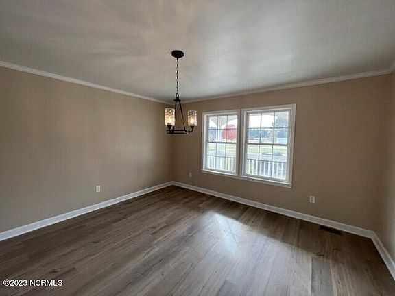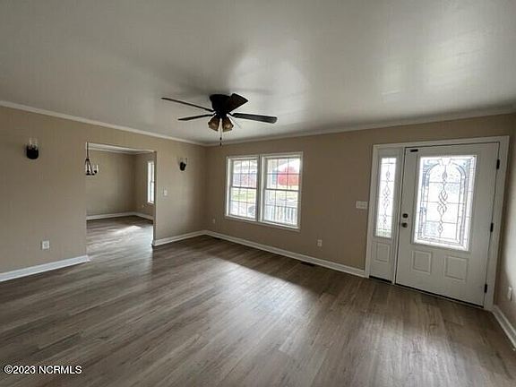 This 4 bedroom, 2.5 bath home sits on 1.62 acres just outside of Ahoskie. The home has recently been completely redone inside and looks brand new. The welcoming front porch brings you into the living and dining rooms. Both of these rooms have nice sized windows, allowing for lots of natural light. The spacious den has a fireplace and open to the brand new kitchen. The new cabinets have soft closing doors and granite countertops. The stainless steel appliances include a gas cooktop, double ovens and a dishwasher. The main bedroom has a large walk in closet and a full bath with a large walk in shower and double sinks. There are three additional bedrooms, one with a walk in closet and one without a closet and there is a nearby full bath. The entire first floor has recently installed LVP flooring, all new light fixtures and ceiling fans and is freshly painted. There is a permanent staircase that leads to a large attic with new insulation. This area could be easily finished out to provide additional living area. There is a two car detached garage and there are two chicken coops in the fenced back yard.