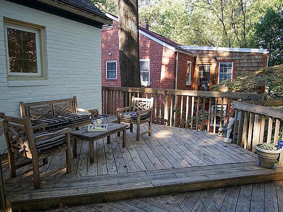 Adorable 1946 Brick Cape Cod on a peaceful cul-de-sac by Opal Daniels Park! A short stroll to Town Hall, Food Coop & just over a mile from Metro! Shining wood floors, updated granite kitchen, +a big deck overlooked by a magnificent Beech Tree! An urban forest! Walk out basement with In-Law Suite potential (BR+FB)! Versatile Floor Plan w/chance to add upper F/B later! A hidden pearl awaits you!