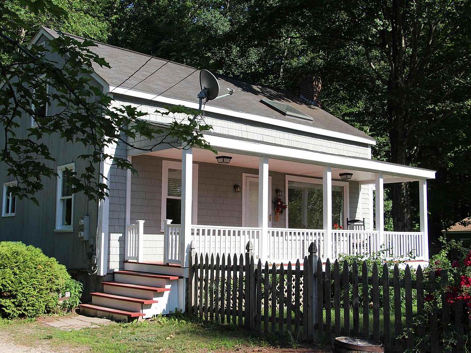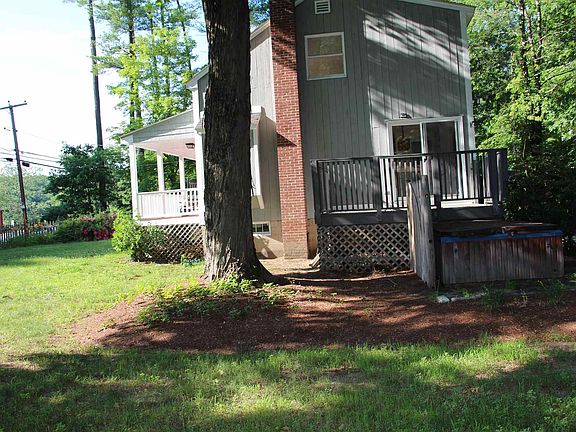 Come take a look at this great 3 bedroom, 1 1/2 bath home ready for a new owner. Newly installed heating and cooling system, freshly painted exterior, along with some interior rooms. All you need to do is move in! Cathedral ceiling in living room, open to dining area. Fully applianced kitchen, 1st floor bedroom or office and 1/2 bath complete the first floor. 2 bedrooms, loft area and full bath on 2nd level. Hardwood floors could use some refinishing. Enjoy the front porch or the private back deck and hot tub backing up to town land. Level and fully fenced backyard, ideal for kids, dogs or entertaining. Plenty of storage in basement with additional utility shed for outdoor equipment. This home is ready for a quick closing and easy to show. Hot tub cover is on order and will be replaced.