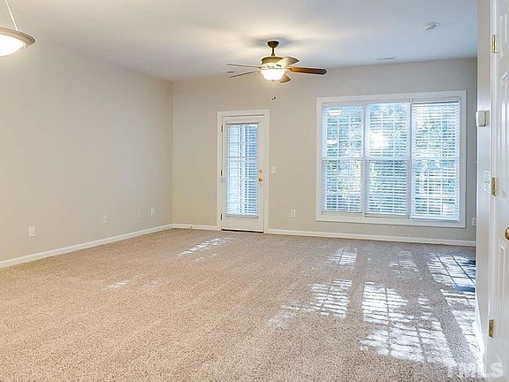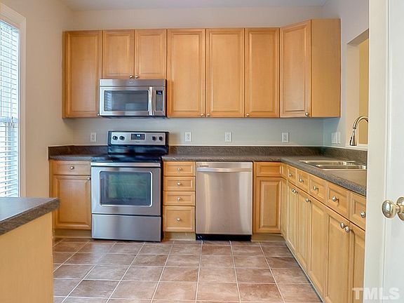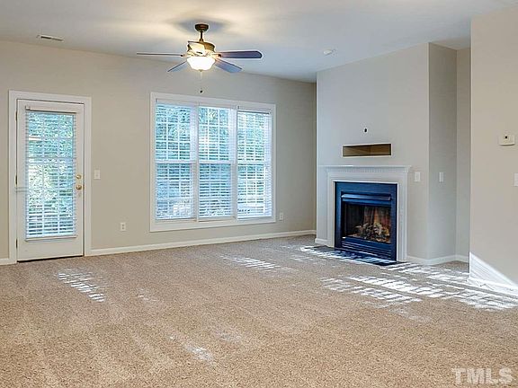 This Rolesville two-story cul-de-sac townhome offers a fireplace, kitchen pantry, stainless steel appliances, a master bedroom walk-in closet, and an uncovered patio.