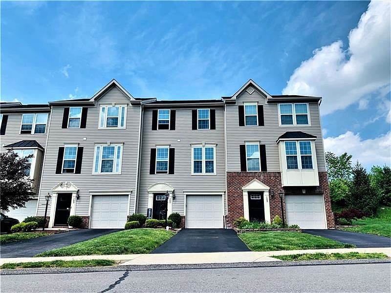Absolutely spectacular townhouse in Prestley Heights just minutes to both I 79 and 279 Carnegie Exits, Pristine condition top to bottom, the 19x15 kitchen/dining area features an open floor plan to the living room, the kitchen has 42 inch maple cabinets, stainless steel GE appliances with a side by side Whirlpool refrigerator, 62"x42" center island/breakfast bar with seating and cabinets beneath, extensive recessed lighting, large pantry closet and a sliding glass door that leads to the 16x16 rear deck. The 1st floor has 9 ft high ceilings and a convenient 1st floor powder room is off the living room.Hardwood floors 1st and 2nd flr. The beautiful gamrm area has a gas fireplace and mantel along with flat screen TV mounts above for entertaining family and friends and vinyl plank flooring for easy care and cleaning, The 2nd floor spacious master suite has a large walk in closet, the master bath has a dbl wide vanity and also has a door to the hall, convenient 2nd flr laundry &wash/dryer