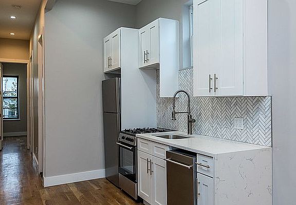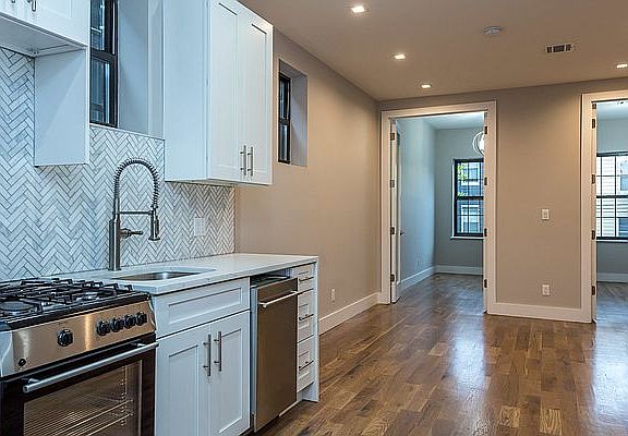 This newly renovated 3 bedroom is awesome! High ceilings, hardwood floors, recessed lighting, open concept living room and modern kitchen with stainless steel appliances - including dishwasher, sunny windows, laundry in building, and 1 and 1/2 baths! Super close to lots of coffee shops, restaurants, bars, grocery stores, retail, and the L & G trains!