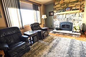 Panoramic mountain viewsEasy clean showerWalk-in closetVeneer stone fireplaceAlder wood trimGas rangeFinished basement