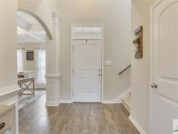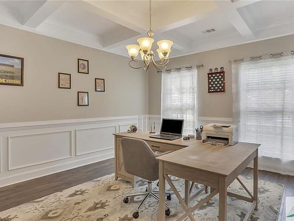 Welcome home to 107 Smithwick Trail in the highly desirable South Effingham schools district. Upon entering the foyer you will enjoy the views of the open concept floor plan that is enhanced by 9' ceilings throughout the downstairs. This home has been immaculately maintained and is move in ready. Boasting premium builder upgrades throughout such as wood flooring down stairs, tile in master bathroom, granite counter tops, and coffered ceiling in the dining room you will enjoy top of the line finishes at home. With ample space for entertaining indoors between the living area downstairs and and the large upstairs loft as well as the large fenced backyard overlooking the pond you will have great opportunities to enjoy entertaining friends and spending quality time with family. Come today and experience what making 107 Smithwick Trail home will mean for you and your family!