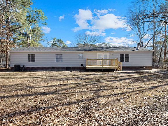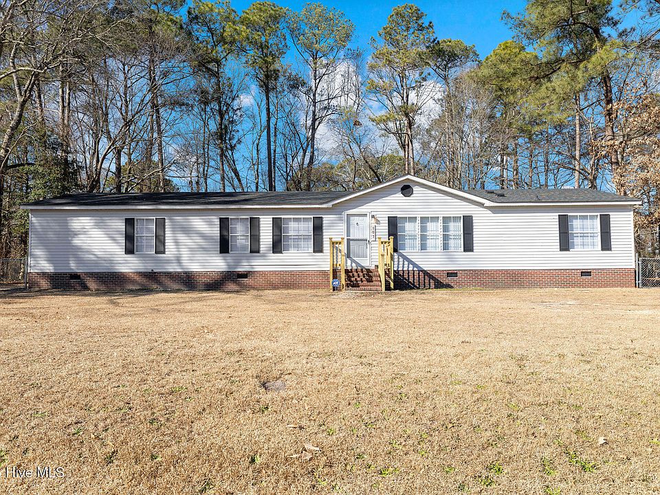 This beautifully designed doublewide home offers 3 bedrooms, 2 full bathrooms, and over 2000 sqft of living space. Updated with fresh paint throughout, this move in ready home has 2 living areas, a large galley style kitchen with new cabinetry and an island and a large dining area. The primary suite is spacious with a separate nook, perfect for an office, dressing room or nursery. The front porch and back deck are both new and the backyard if fully fenced in. Conveniently located just off HWY 117 and near HWY 70, HWY 795 and Interstate 42. 15 minutes from Seymour Johnson Air Force Base and Wayne UNC Health.