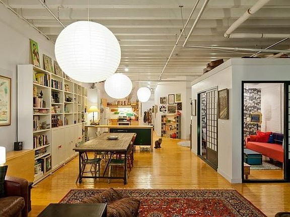 Leather District Brick and Beam! At 1200 SF of usable space the internal design of the loft allows for a flexible and changeable room layout. An internal structure with sliding screens serves multiple uses as the "pod" within the main space. The open kitchen features a custom butcher block, which serves as a kitchen island and/or breakfast bar... ideal when entertaining at home. A long entrance hallway, perfect for displaying art, leads to the rest of the unit's amenities, e.g., bathroom, bedroom, laundry + storage closets. Decommissioned freight elevator is used as in home office or great for overnight guests. This unit offers lots of character and charm. bathroom, bedroom, laundry + storage closets. Decommissioned freight elevator is used as in home office or great for overnight guests. This unit offers lots of character and charm.