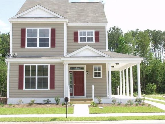 This expanded Greene model offers 4 bedrooms (2 master bedrooms) and 3.5 baths with a lot of extra rooms- formal living room or office, dining room, eat in kitchen, family room, wrap around porch. This community has sidewalks, community pool, fitness center and is close to schools, shopping and quick access to the interstate, Beaufort, and Savannah, and the beaches. Home is closer to 2500 sf with top floor finished which has a full bath. New roof 10-2021, new HVAC late 2020 early 2021. New paint and major flooring on 2nd and 3rd floors. ONE YEAR HOME WARRANTY INCLUDED. OSCREB