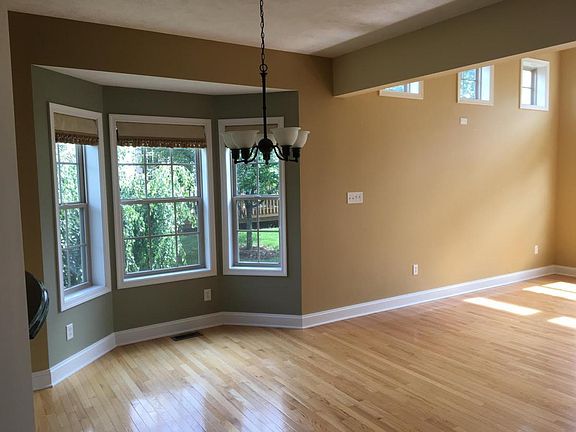 Large luxury 4 BR, 4.5 BA home available for rent in desirable Canterbury Crossing neighborhood. Available immediately for a one-year lease. Experience carefree living (all lawn care and snow removal provided) in this elegant and light-filled home. Bright and spacious two-story great room with hardwood floors and gas fireplace opens to a deck with automatic retractable awning. The open floor plan includes a dining room and eat-in kitchen with granite counters and high-quality appliances, including a Bosch gas stove. The first-floor master bedroom suite has a cathedral ceiling, walk-in closet and jetted tub, two vanities/sinks. From the two-car garage, you enter the mudroom which includes a washer and dryer with a half bath available for guests. Upstairs there are 3 bedrooms and 2 baths; one is a second master bedroom with en-suite bath. One bedroom could be a den or office. The fully finished basement has a large bathroom with sauna, an efficiency kitchen/wet bar, recreation room, laundry room, living room, and storage rooms. The home is in walking distance of excellent public elementary and middle schools, and convenient to open space -- Crossing Park, bike and walking paths and Centre Hills CC Golf Course--as well as a new grocery store, fitness centers, local coffee shop, campus, and downtown. Available semi-furnished or unfurnished, as needed. 1 year lease preferred, but negotiable. Minimum lease period is 6 months.