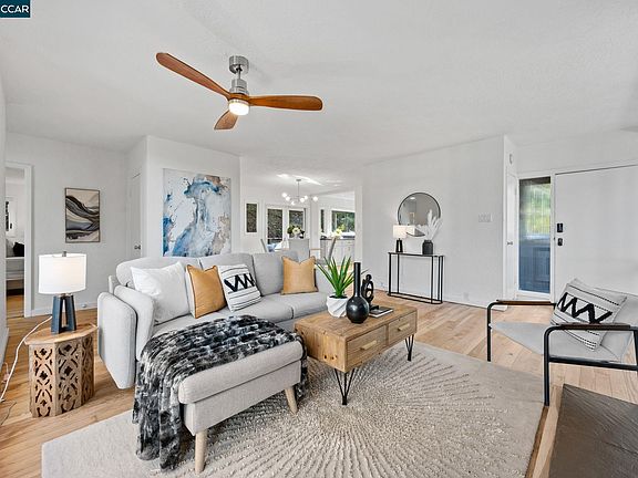 This stunning single-level Mid-Century Modern home features walls of glass that fill the space with natural light. The sleek, modern kitchen includes new appliances and a pantry, while the open living and dining areas center around a cozy fireplace. The primary bedroom offers a serene seating area, and hardwood floors flow throughout. Enjoy a private deck perfect for alfresco dining or relaxing in the hot tub under the stars. A detached office makes an ideal work-from-home setup, and the flat yard is perfect for play or leisure. Hobbyists will love the large workshop off the garage. Nestled in a private setting near downtown Orinda and Oak Springs Pool, this home offers access to top-rated Orinda schools. Don’t miss this incredible blend of style, comfort, and convenience!
