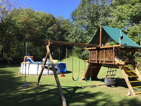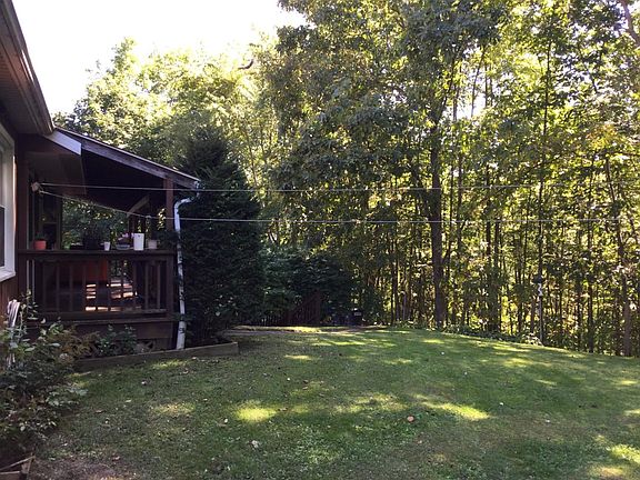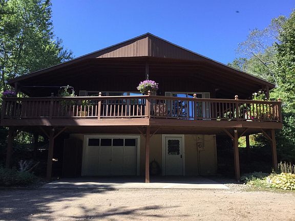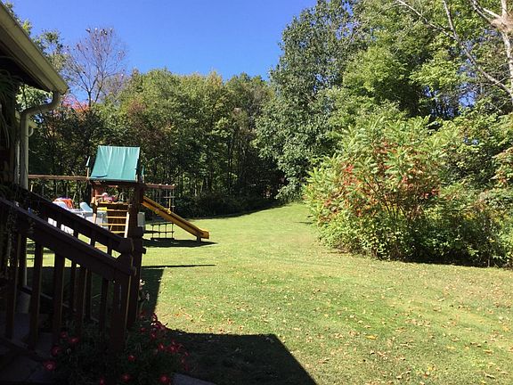 Over 3,100 sq. ft. of living space awaits you in this charming chalet style home with 2 bedrooms and two baths. Eat in kitchen with all appliances including washer & dryer. Finished basement (possibility of two more bedrooms and full bath should you need). Easy to heat with pellet stove in the basement and electric heat, if you prefer. Hardwood floors, newer water pump and water tank, new hot water heater and complete new roof with architectural shingles are only 4 years old. Over 900 sq. ft of wrap around decking with a gorgeous view of the park like grounds. You have got to come for a look. With low taxes and a great school district, you won't be disappointed.!