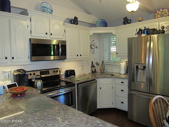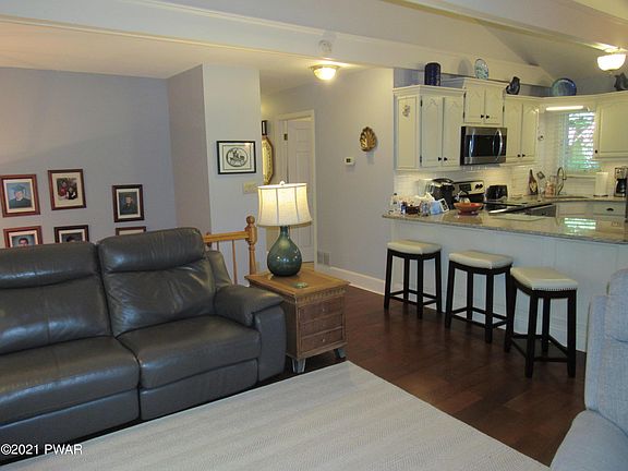 Pocono oaisis. Immaculate home. Private setting. Beautiful 3 bedroom/1.5 bath. Finished basement family room. Sun porch is fully insulated and heated. Enjoy a family gathering on the oversized back deck. Open floor plan. New modern kitchen. Anderson Thermopane Windows. Close to state forests, Promised Land State park, and only11 miles to Lake Wallenpaupack. Convienient to interstate highways, casinos, and shopping. Move right in and enjoy country living.